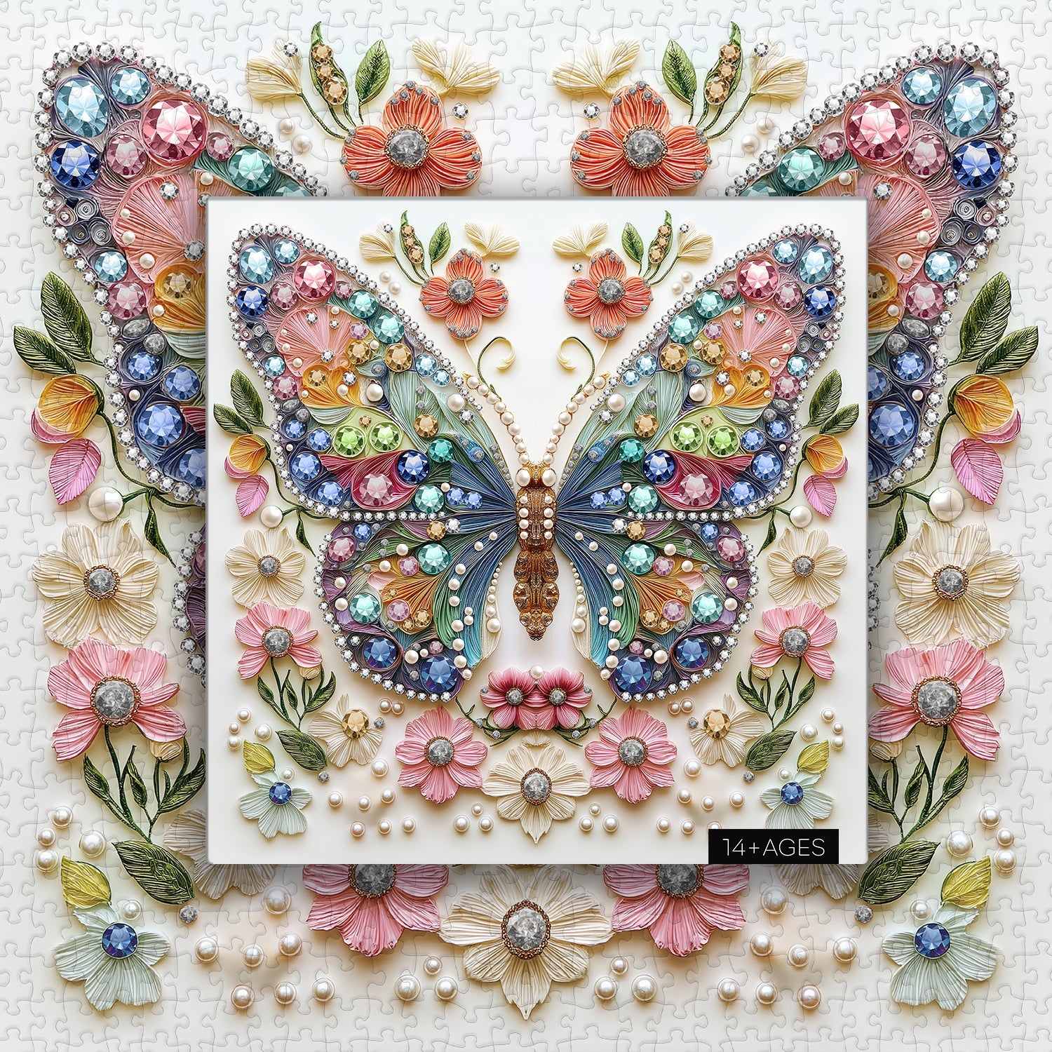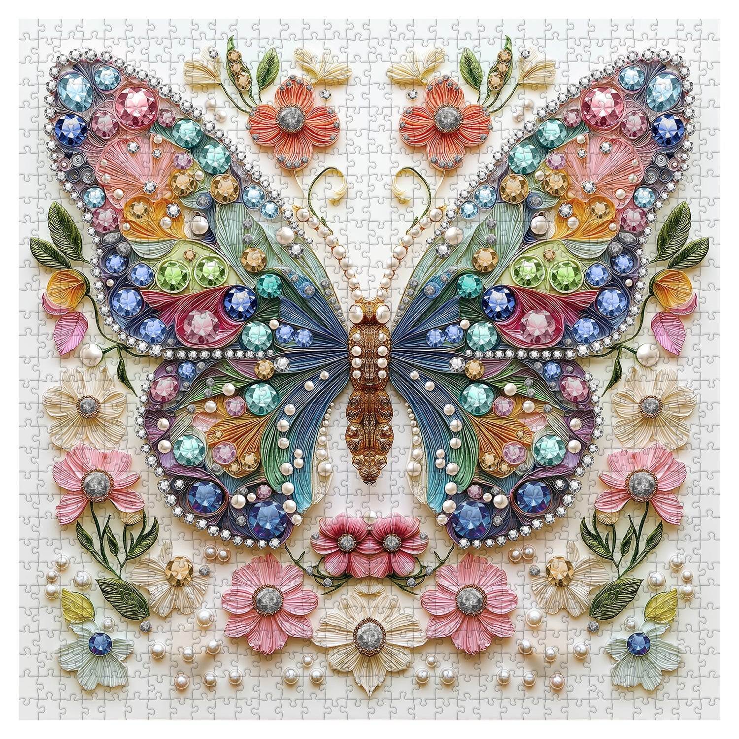 Exquisite Handmade Art Design: This puzzle features a stunning butterfly crafted from colorful paper quilling and shimmering jewels, symbolizing the perfect blend of art and nature. Every wing is meticulously designed with intricate patterns and vibrant hues, resembling a delicate handmade piece of art, radiating elegance and craftsmanship.